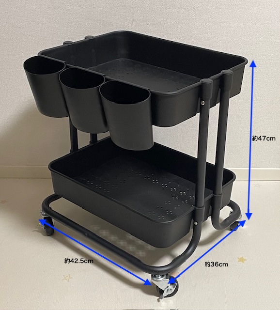 高さもデスクの下に入るほどの高さ(デスクの高さにもよりますが)になっていますので、2段ラックもデスク下に収納できてスッキリします。